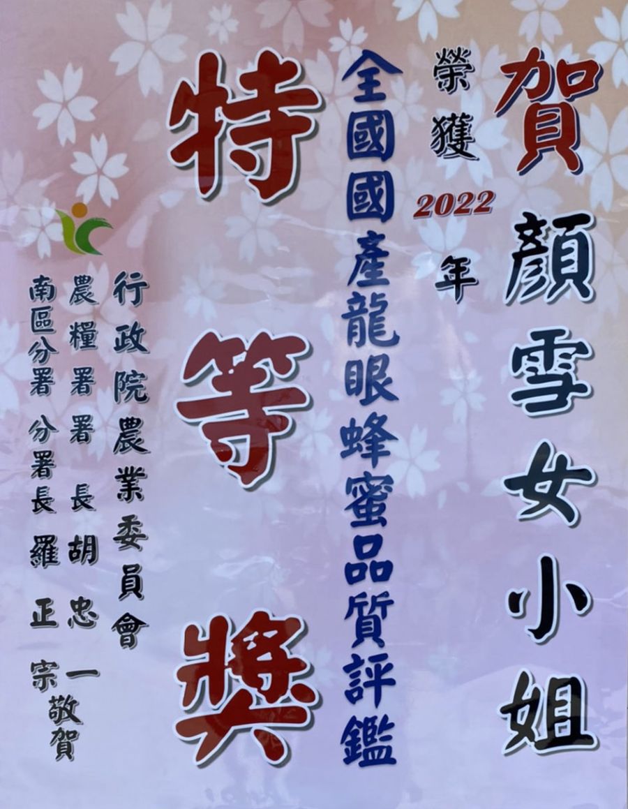 2022 全國國產龍眼蜜品質評鑑特等獎