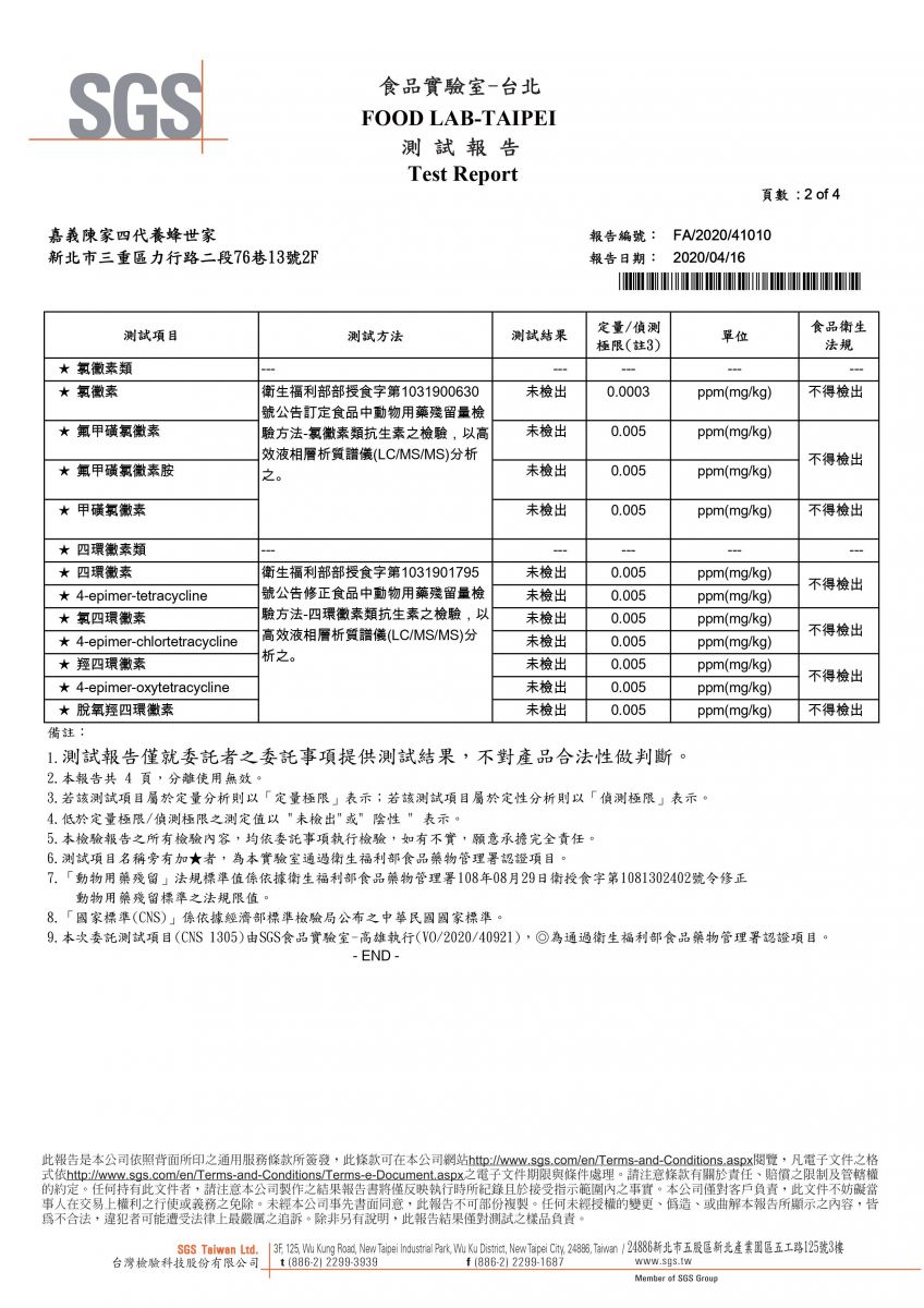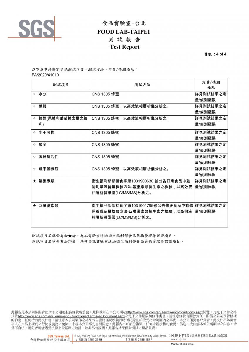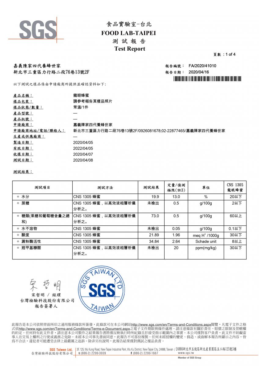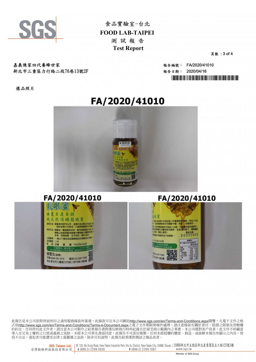 2020 龍眼蜜-SGS檢驗報告